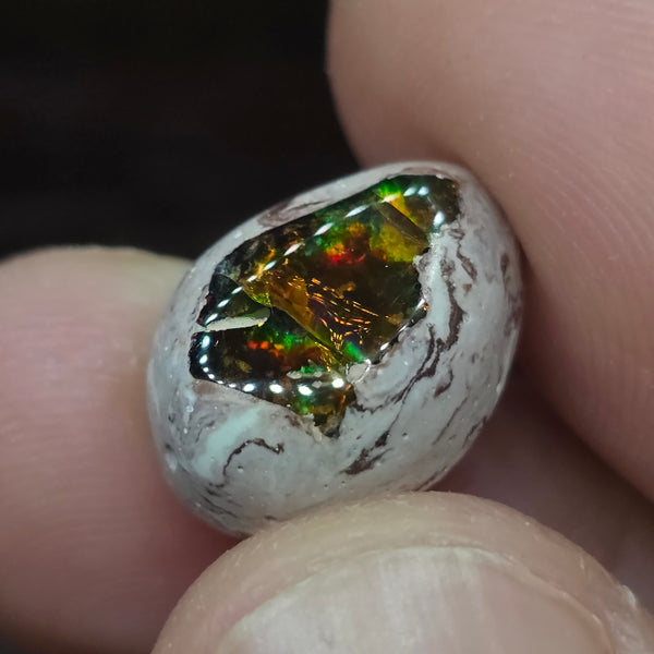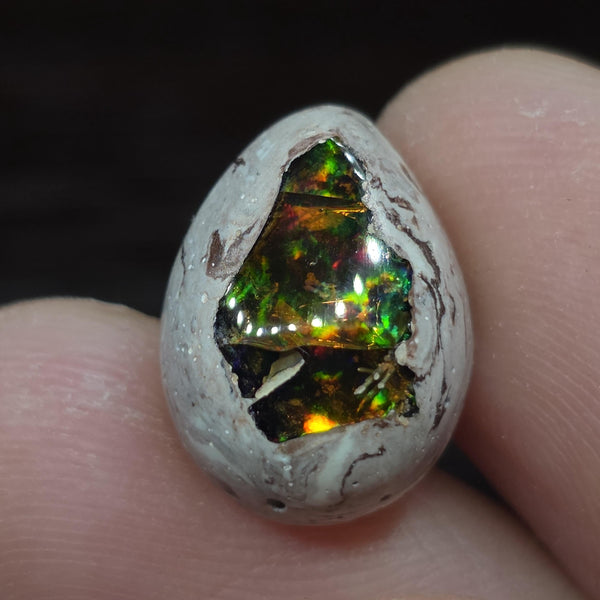 Genuine Galaxy Opal from Jalisco, Mexico. Weight: 7.11 Carat Shape: Pear Cabochon, Polished One Side Size : 15.8 x 11.6 x 6.2mm Clarity: Semi-Translucent