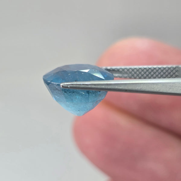 Natural earth-mined Aquamarine from Africa.Weight: 7.18CaratShape: OvalSize: 13.2 x 11.5 x 8.1 mm.Treatment: Unheated UntreatedClarity: SI1