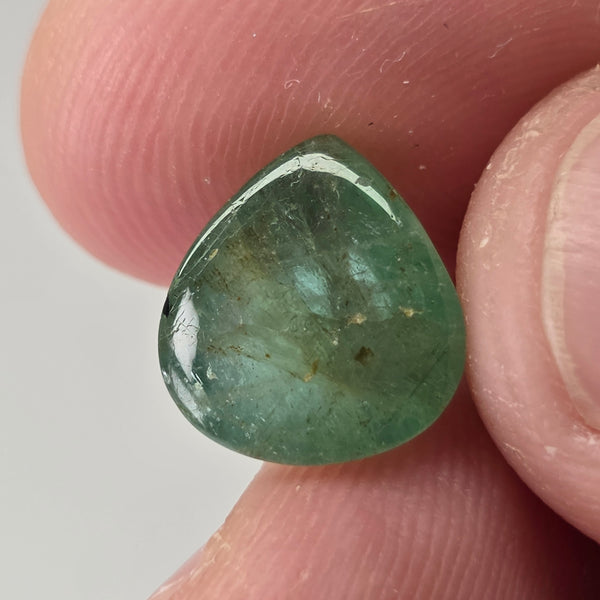 Natural earth-mined Emerald from Ethiopia. Weight: 4.97 CaratShape: Pear Cabochon, Polished Both SidesSize : 11.2 x 10.3 x 6.5mmTreatment: Unheated UntreatedClarity: Semi-Translucent