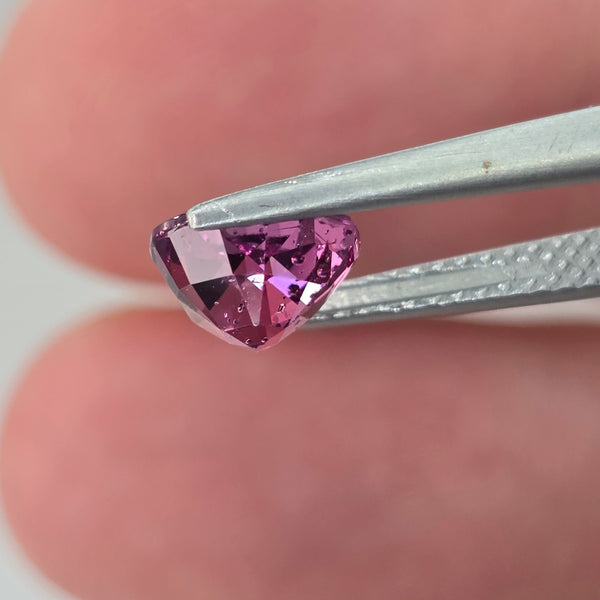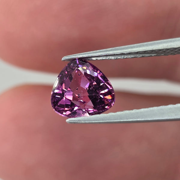 Natural earth-mined Pinkish Purple Rhodolite Garnet from Tanzania, Africa.Weight: 1.83 CaratShape: TrillionSize: 7.0 x 7.0 x 4.8 mm.Treatment: Unheated UntreatedClarity: SI1