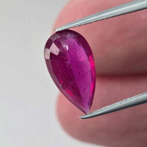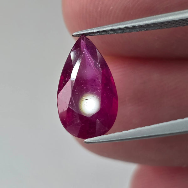 Natural earth-mined Ruby from Madagascar, Africa.Weight: 2.98 CaratShape: PearSize : 13 x 7.2 x 3.6 mm.Treatment: Heated Glass FillingClarity: SI
