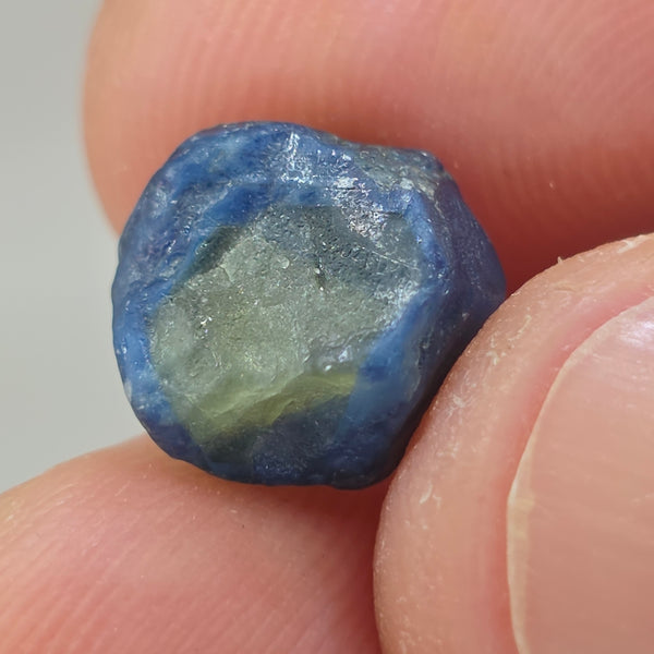Natural earth-mined rough Sapphire from Nigeria. Unheated and untreated. Weight: 6.87 Carat Shape: Rough, Free form Size: 10 x 9 x 5.5mm Treatment: Unheated Untreated Clarity: Semi-translucent