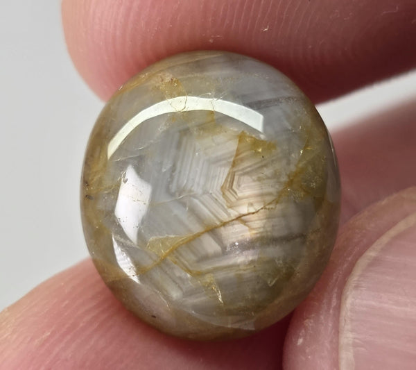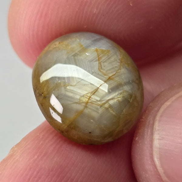Natural earth-mined Star Sapphire from Madagascar, Africa. Weight: 15.33 Carat Shape: Oval Cabochon, Polished One Side Size: 14.7 x 13 x 7.1mm Treatment: Heat Only Clarity: Semi-Translucent