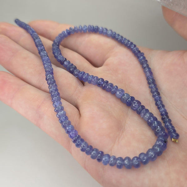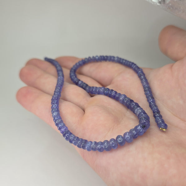 Natural earth-mined polished Tanzanite beads from Tanzania. 16 inch strand.