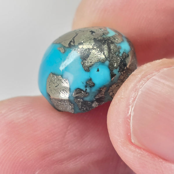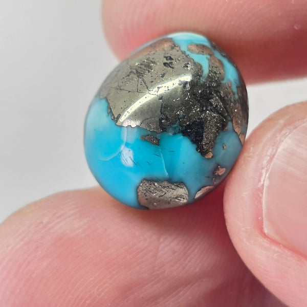 Natural earth-mined Persian Turquoise from the Middle East(DM FOR SPECIFIC REGION). Weight: 21.72 Carat. Shape: Oval Cabochon Size : 16.6 x 13.7 x 5mm Treatment: Stabilized Clarity: Opaque