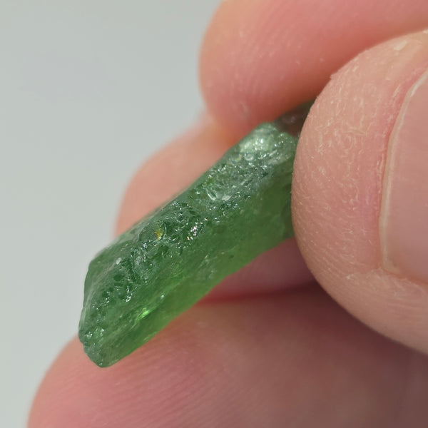 Natural earth-mined Rough Tsavorite Garnet from Tanzania, Africa.Weight: 13.94 CaratShape: Rough, Free FormSize : 23 x 11 x 7mmTreatment: Unheated and UntreatedClarity: Semi-Translucent