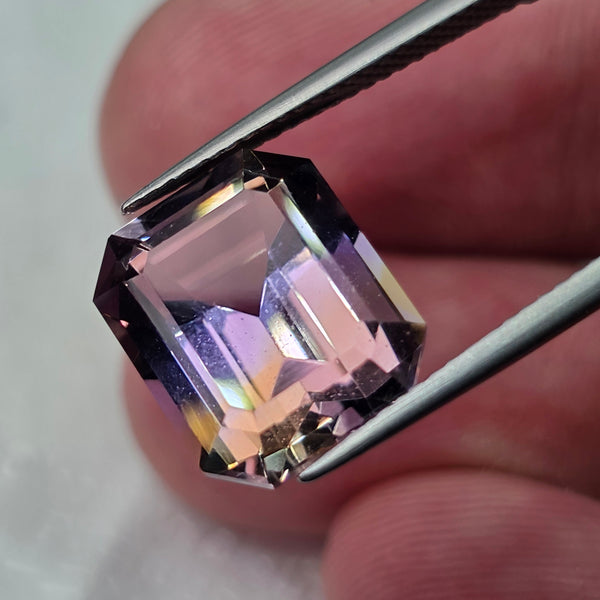 Natural earth-mined Ametrine from Bolivia, South America. Weight: 8.55 Carat Shape: Octagon Size:12.3 x 11 x 8.8 mm. Treatment: Unheated Untreated Clarity: VVS