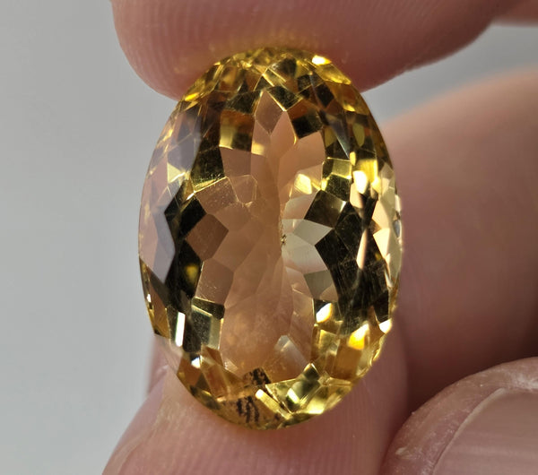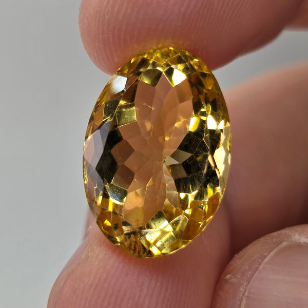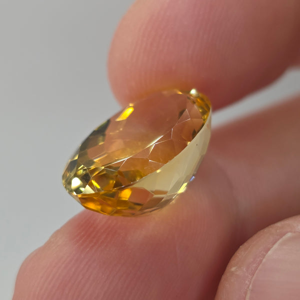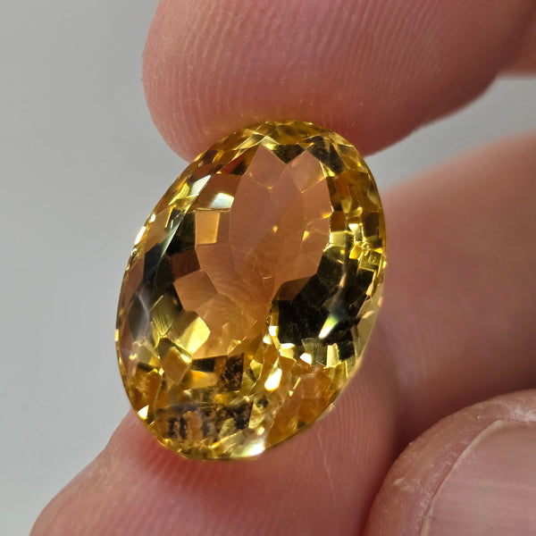Natural earth-mined Yellow Citrine from Brazil. Weight: 13.09 CaratShape: OvalSize : 20 x 12 x 10mmTreatment: Unheated UntreatedClarity: VVS