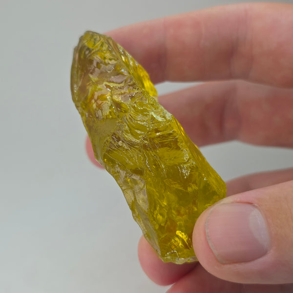 Natural earth-mined rough Lemon Quartz from Brazil.Weight: 276.45 CaratShape: Rough, Free FormSize : 64 x 29 x 20mm.Treatment: HeatedClarity: Translucent Facet Grade