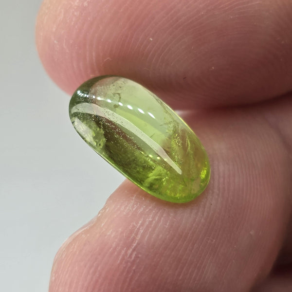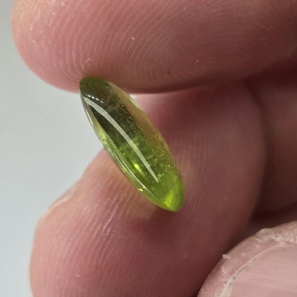 Natural earth-mined Peridot from Pakistan.Weight: 4.68 CaratShape: FreeForm CabochonSize : 14 x 9 x 4 mm.Treatment: Unheated UntreatedClarity: Semi-Translucent