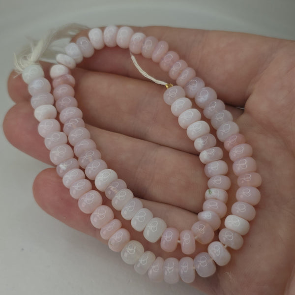Natural earth-mined polished Pink Opal beads from Peru. 13 inch strand.