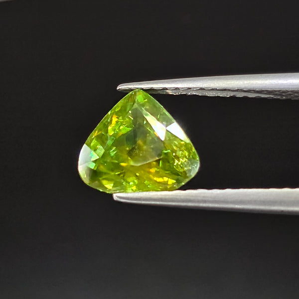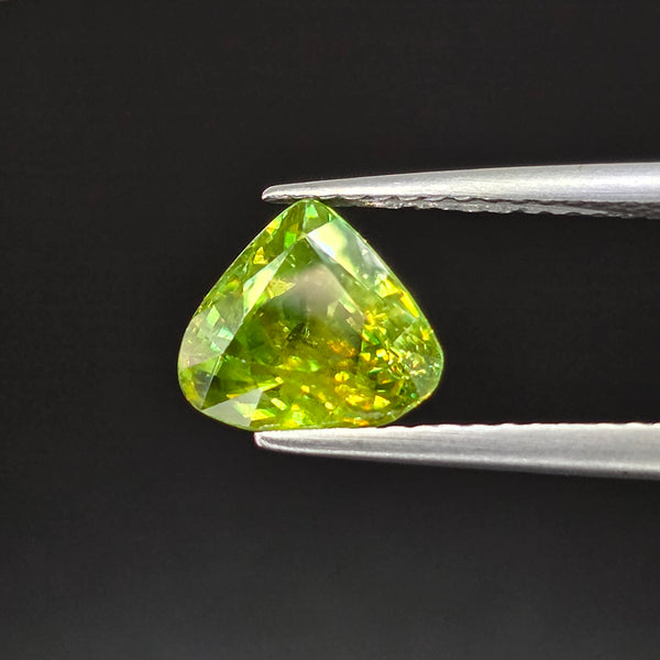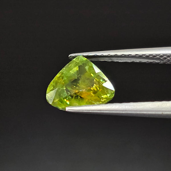 Natural earth-mined Sphene from Madagascar, Africa.Weight: 1.90 CaratShape: PearSize: 8.2 x 7.4 x 4.6mm.Treatment: Unheated UntreatedClarity: SI1